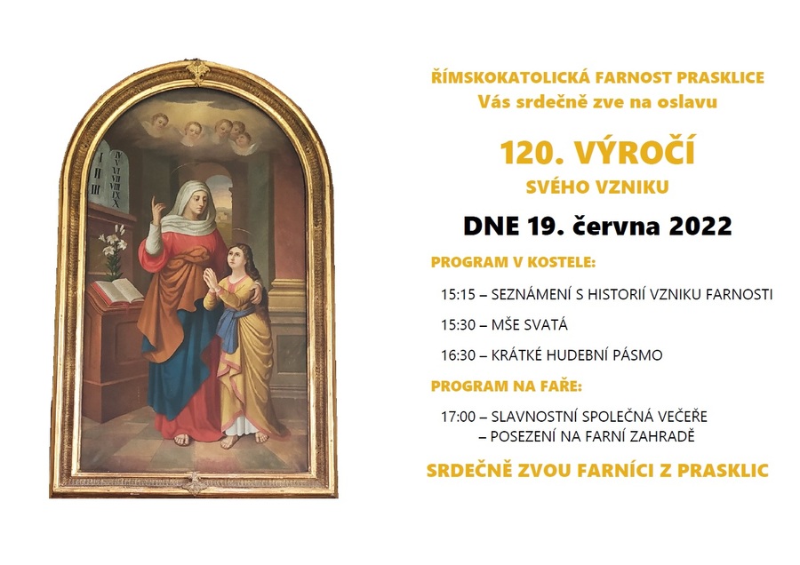 Úvod > Obec > Aktuality a hlášení > Farnost Prasklice - pozvánka 120. let