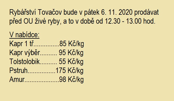 Úvod > Obec > Aktuality a hlášení > Prodej ryb