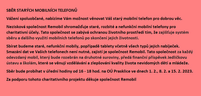 Úvod > Obec > Aktuality a hlášení > Sběr starých mobilních telefonů - REMOBIL