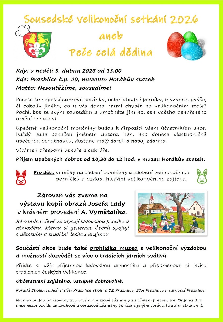 Úvod > Obec > Aktuality a hlášení > Sousedské velikonoční setkání aneb Peče celá dědina 2026