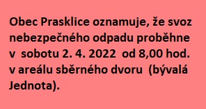 Úvod > Obec > Aktuality a hlášení > Svoz nebezpečného odpadu 4/2022