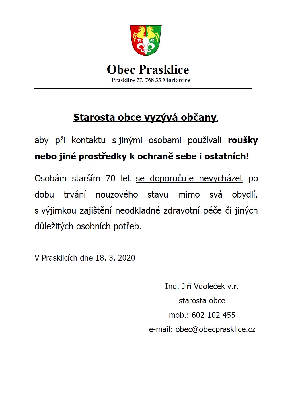Úvod > Obec > Aktuality a hlášení > Výzva starosty obce